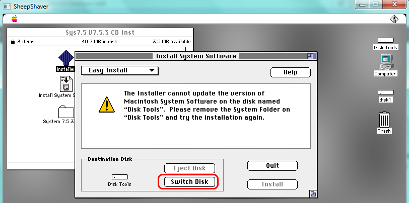 На самом деле, конкретно для моей задачи больше подошёл бы эмулятор Basilisk II, но он вылетал по непонятной причине. Как было написано выше, SheepSaver это эмулятор всё же для более свежих Mac и Mac OS, начиная с 8-ки. Тем не менее он прекрасно работает с 7.5.3-7.5.5, вот только установка оказалась гораздо запутанней, так как пришлось изучать и сопоставлять две разные инструкции, перебирать варианты, ошибаться, и в итоге затратить много времени, чтобы понять, что к чему.