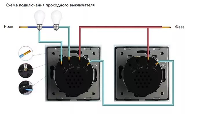 Если помещения имеет длинный коридор или же тоннель, то включить один и тот же светильник выключателем, расположенным в начале и конце его не получится, для этого предназначен проходной сенсорный выключатель. Подключается он по специальной схеме.
