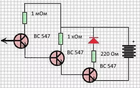 - Первое место в цепи, сразу после датчика, занимает транзистор с высокой чувствительностью и низкой мощностью.