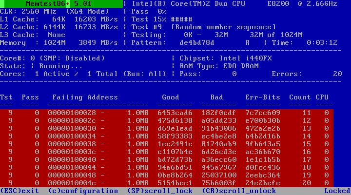 Тест оперативной памяти memtest86+ — 1,5 млн ошибок [Видео]: