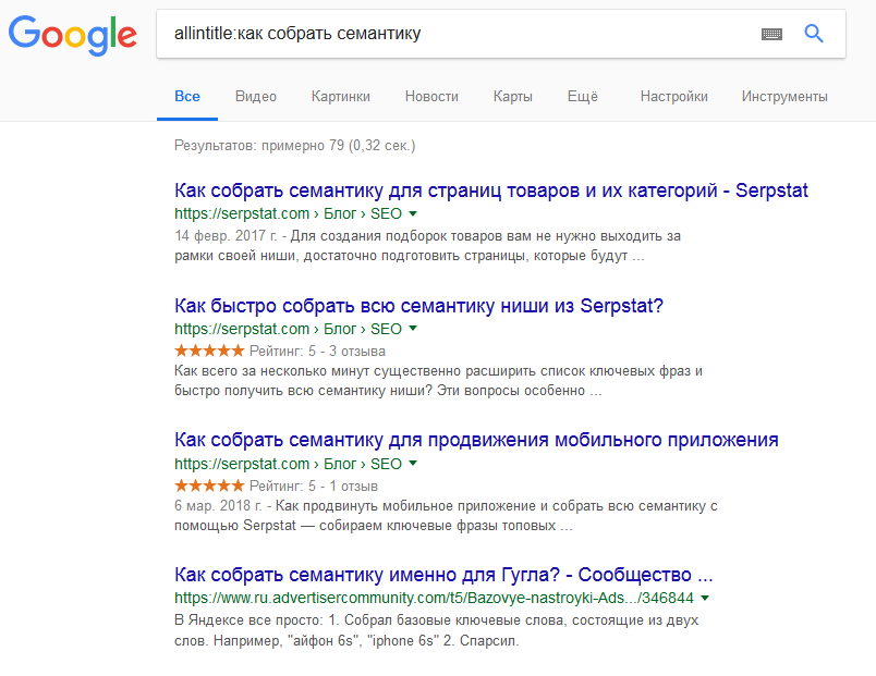 allintitle:как собрать семантику